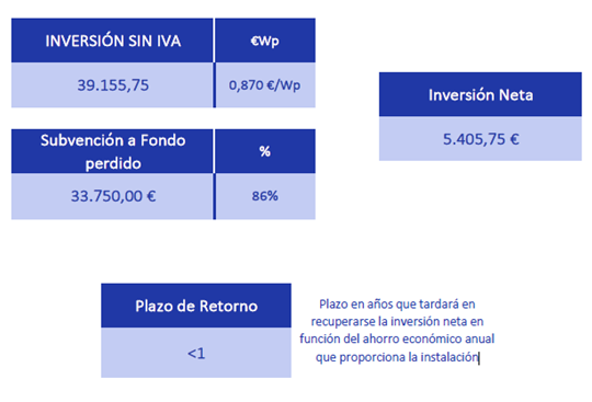 Instalazioaren alderdi ekonomikoari dagokienez, egindako inbertsioa urte bateko epealdian berreskuratzea aurreikusten da.