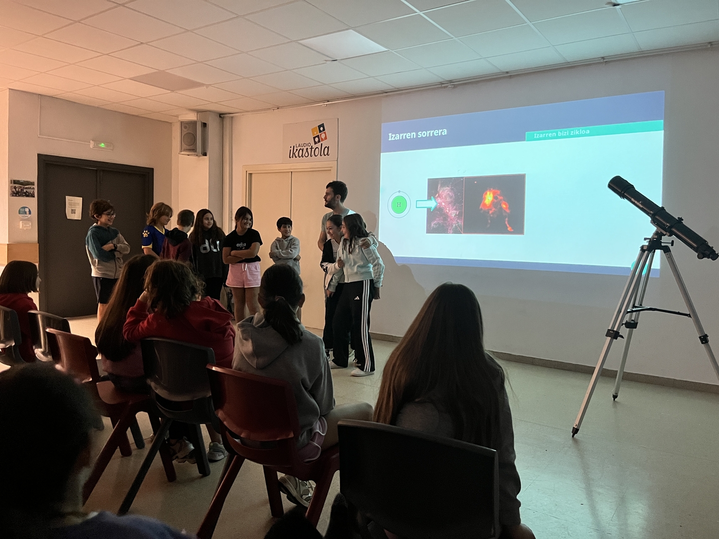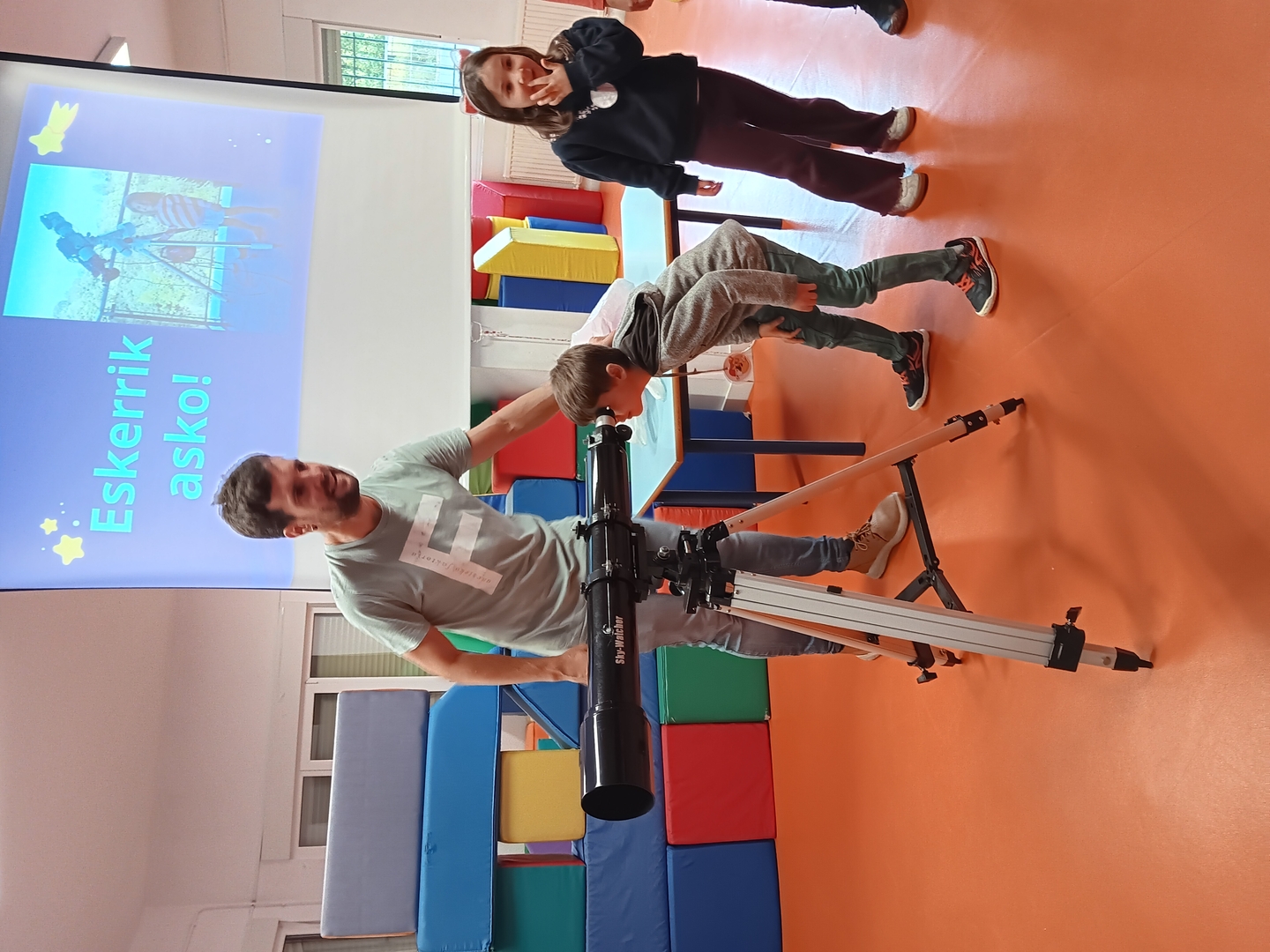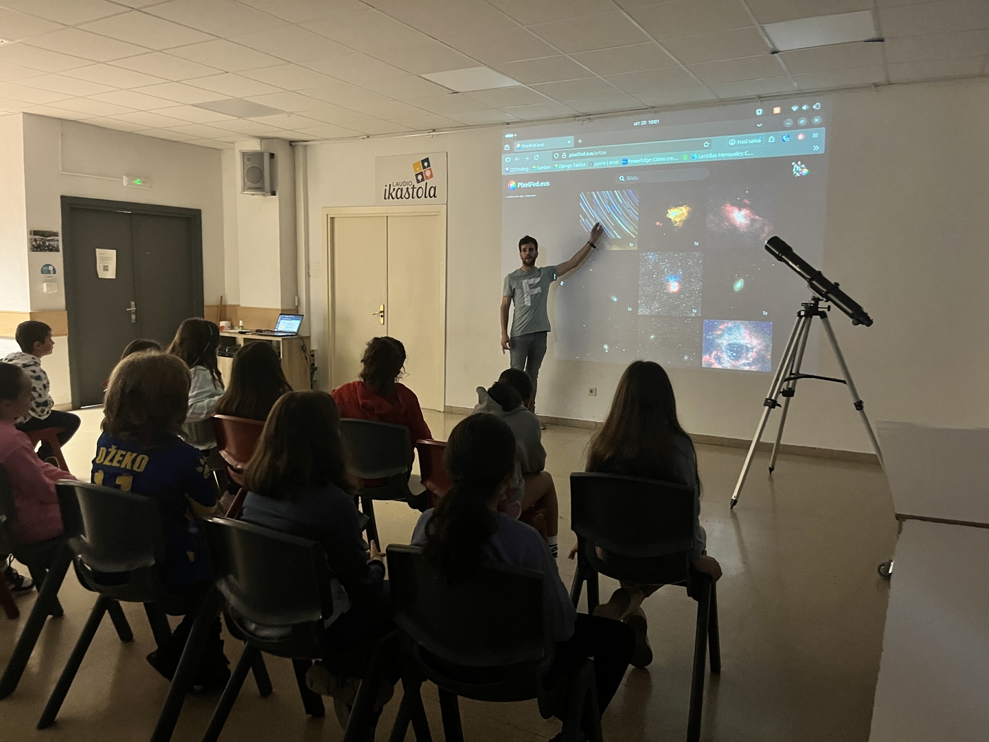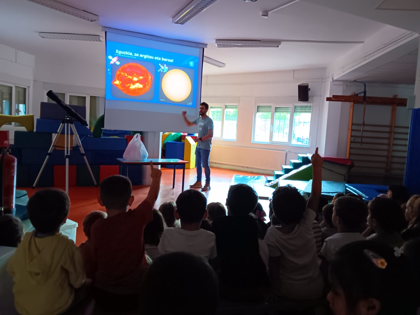 Unibertsoa lantzen ari direla probestuta, Lehen Hezkuntzako 5. mailako ikasleek ikastolako gurasoa den Urtzi Odriozola Lizaso gonbidatu dute gelara, astronomiari buruz duen zaletasuna beraiekin partekatu dezan. "Unibertsoari buruzko hainbat bitxikeri kontatu zizkigun. Bere teleskopioarekin ateratako argazkiak ikusteko aukera izan genuen ere. Harrigarria etxeko balkoitik ikus daitekeen guztia!" adierazi dute ikasleek.