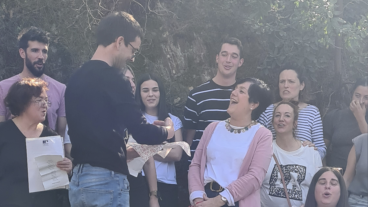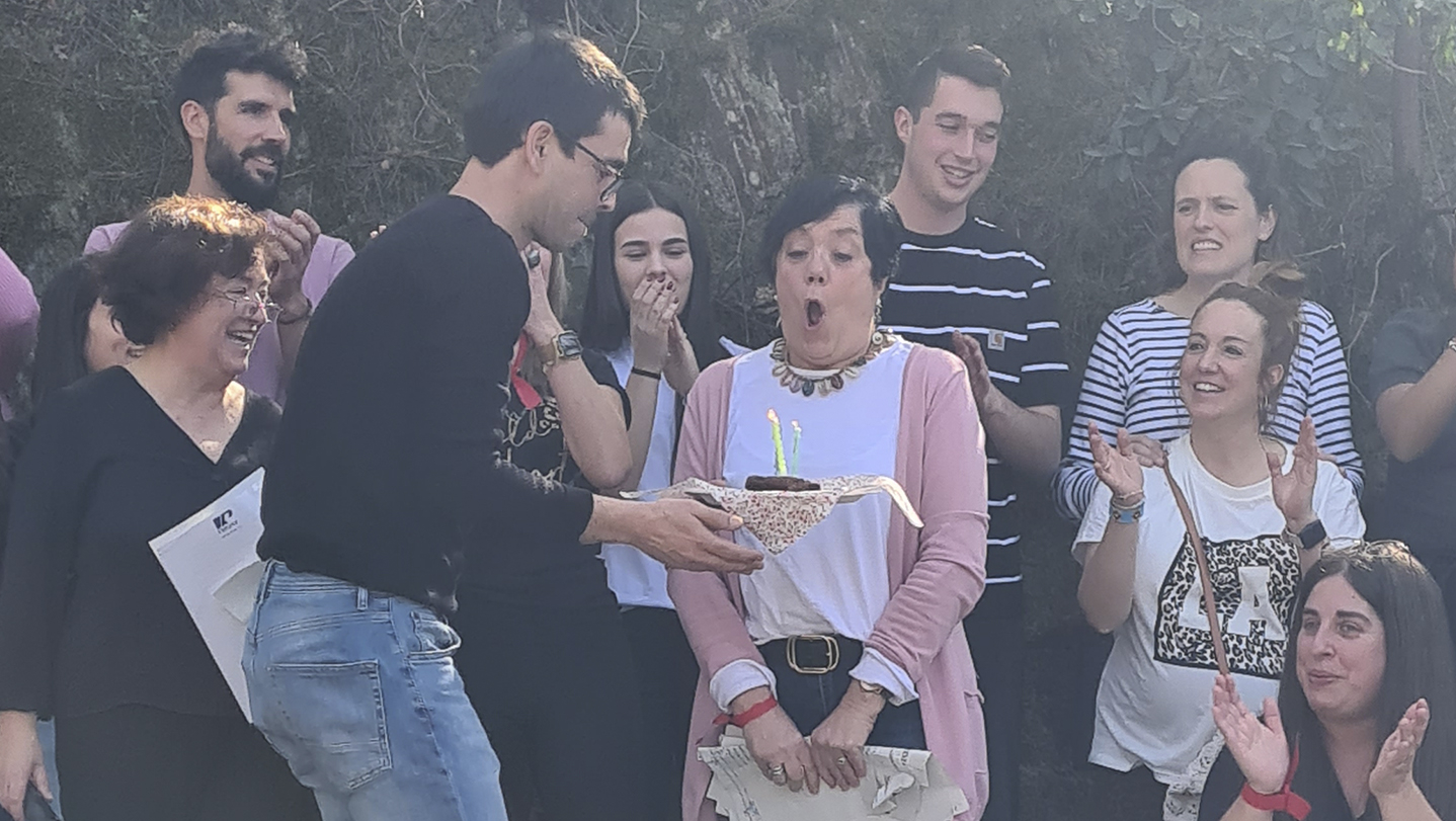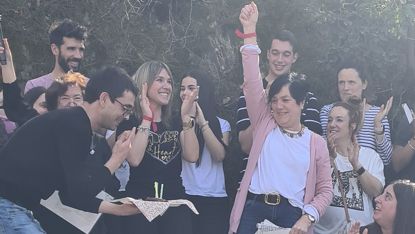 Berton ez zeudenak ere izan zituen gogoan: "Batzuk ez zaudete momentu honetan hemen, jubilatu zaretelako, beste batzuk beste toki batzuetara joan zaretelako edo mundu hau utzi duzelako. Gogoan zaituztet, eta momentu hau aprobetxatu nahi dut eskerrak emateko garai gogorretako zailtasunak gainditzen eta une zoriontsuetako pozak partekatzen irakatsi didazuelako".