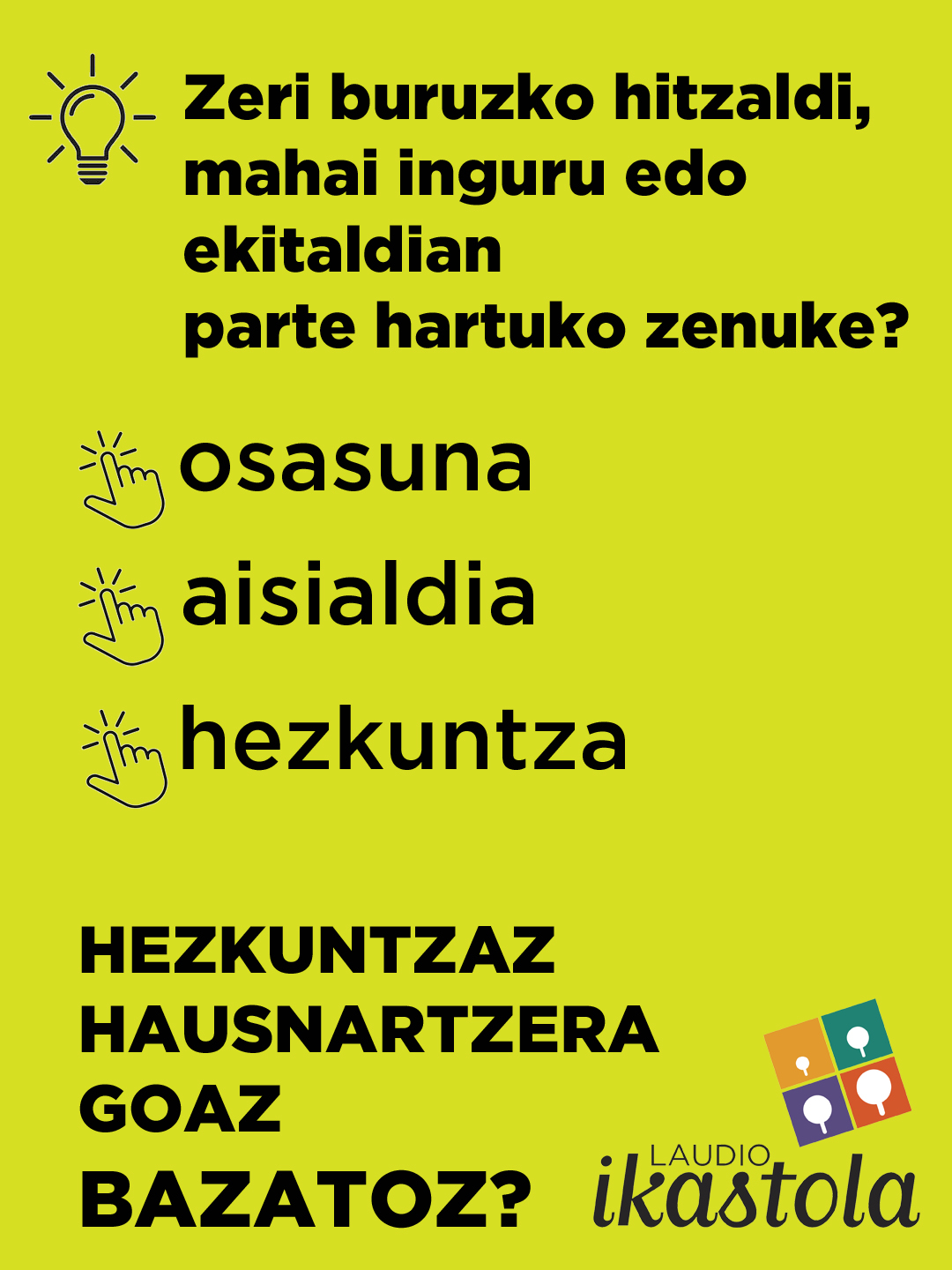 Ikasturtean zehar familiekin batera gai ezberdinen inguruan hausnartzeko hitzaldi, mahai inguru edo bestelako ekimenak landu nahi ditugu. Ardatza familien interesetan kokatu nahi dugu eta horretarako galdetegi honen bidez zuen iritzi eta ekarpenak jaso nahi ditugu.