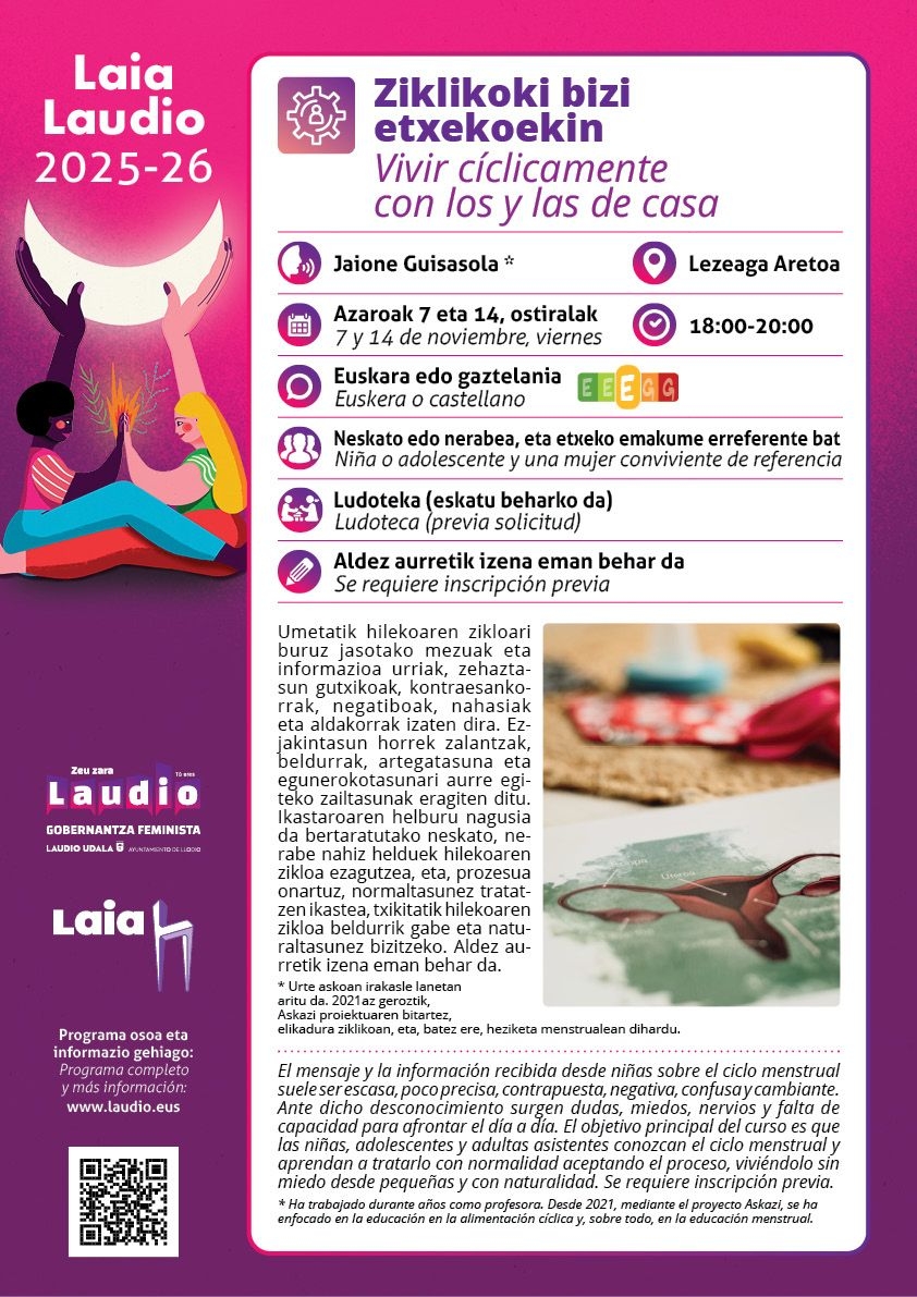 Hilekoaren zikloa ezagutarazteko ikastaroa neskato, nerabe eta helduentzat.