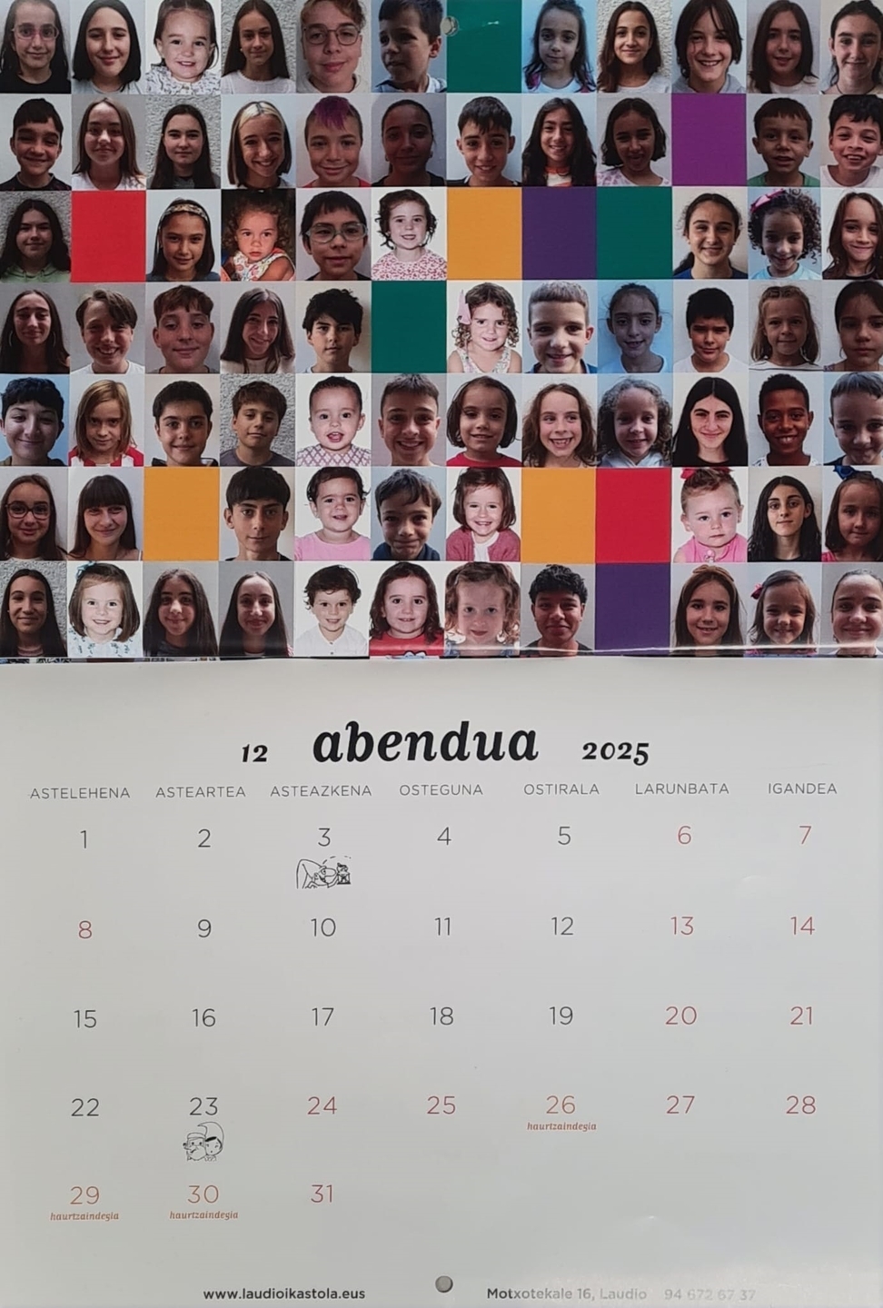 Urtero bezala, Ikastolako ikasleen argazkiez atondutako 2026 urterako egutegia kaleratuko dugu azken urteotako prezioan, 10 euro.