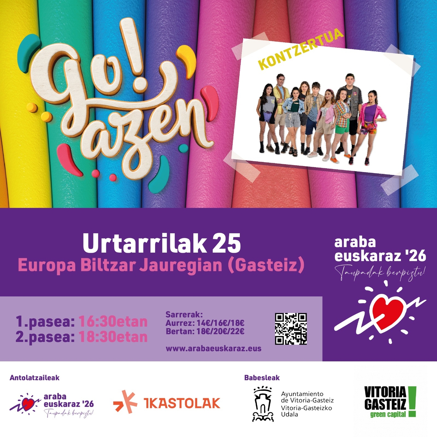 Urtarrilaren 25ean Gasteizko Europa Jaruregian, GO!AZENen emanaldi bi izango dira Araba Euskarazen eskutik 16:30ean eta 18:30ean.