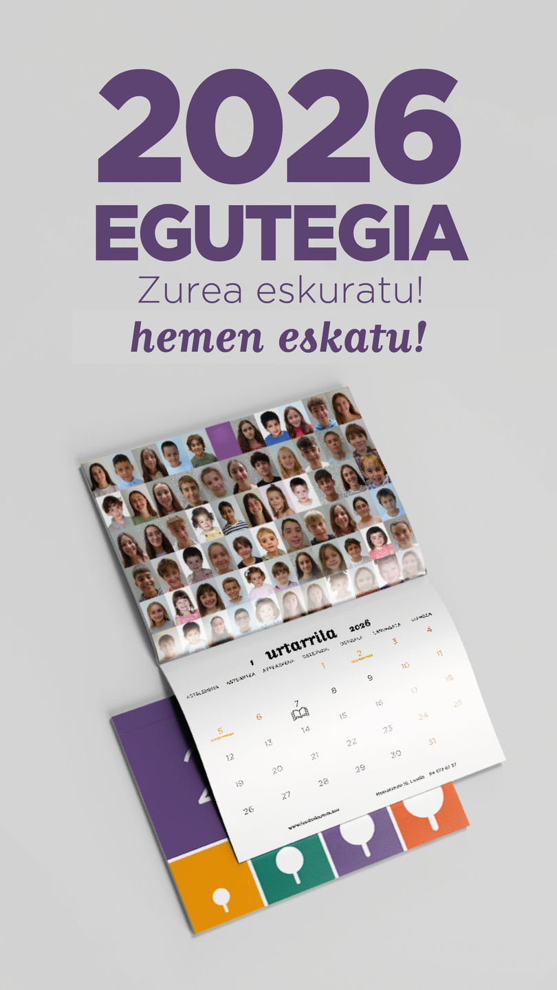 Urtero bezala, Ikastolako ikasleen argazkiez atondutako 2026 urterako egutegia kaleratuko dugu azken urteotako prezioan, 10 euro.