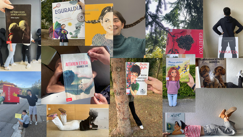 Euskarazko liburu eta disken portadak birsortu dituzte gorputz atalak edota eguneroko objektuak erabilita.