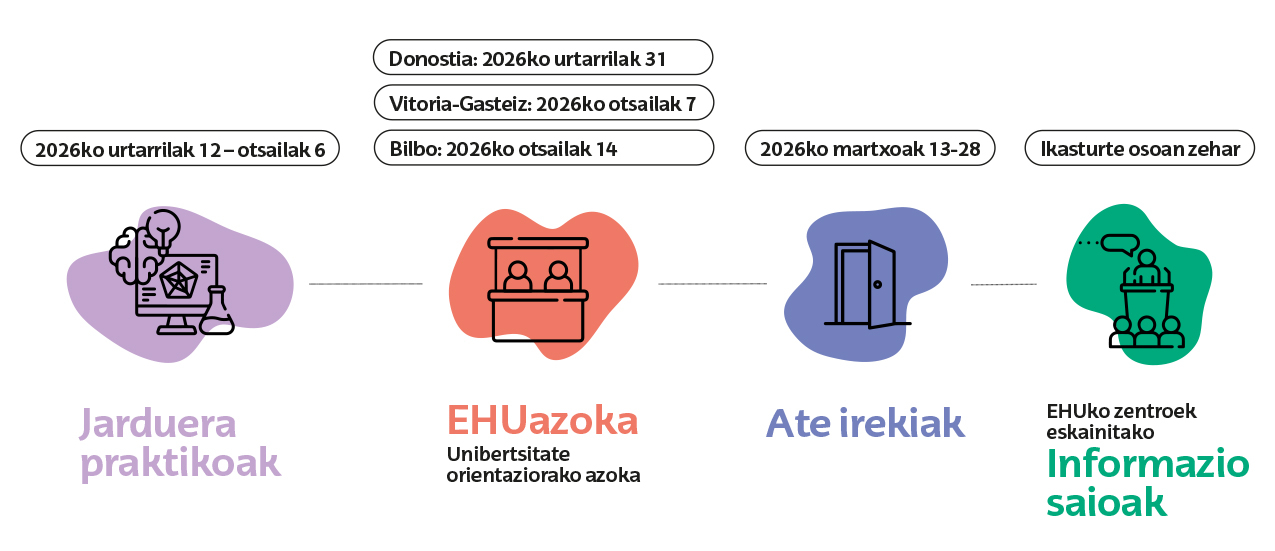 Euskal Herriko Unibertsitateak hainbat oreintazio jarduera iragarri ditu datozen asteetarako eta inforgrafia baten bidez sareratu ditu