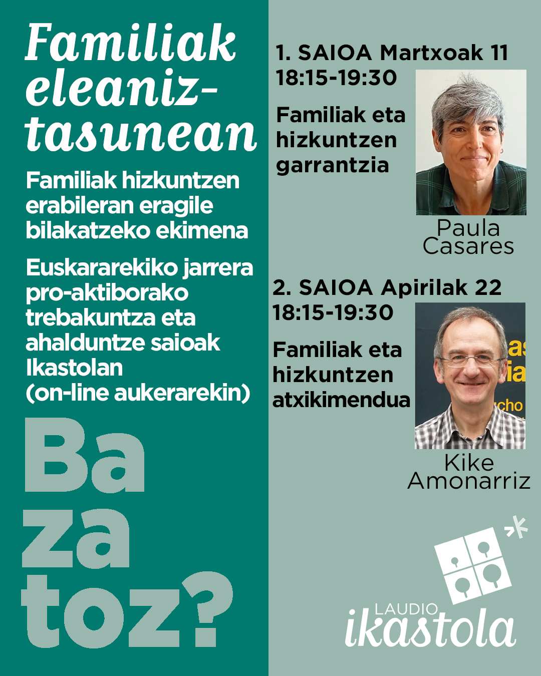 Familiei Laudio Ikastolan bertan HIZPRO dinamikan ari diren irakasleekin elkarlanean aritzeko proposamena egiten diegu, hizkuntzen erabileran euskararen aldeko eragile bilakatu daitezen; hau da, Laudio Ikastolako familiak euskararekiko jarrera pro-aktiborako trebatu eta ahalduntzeko dinamika sor dezagun.