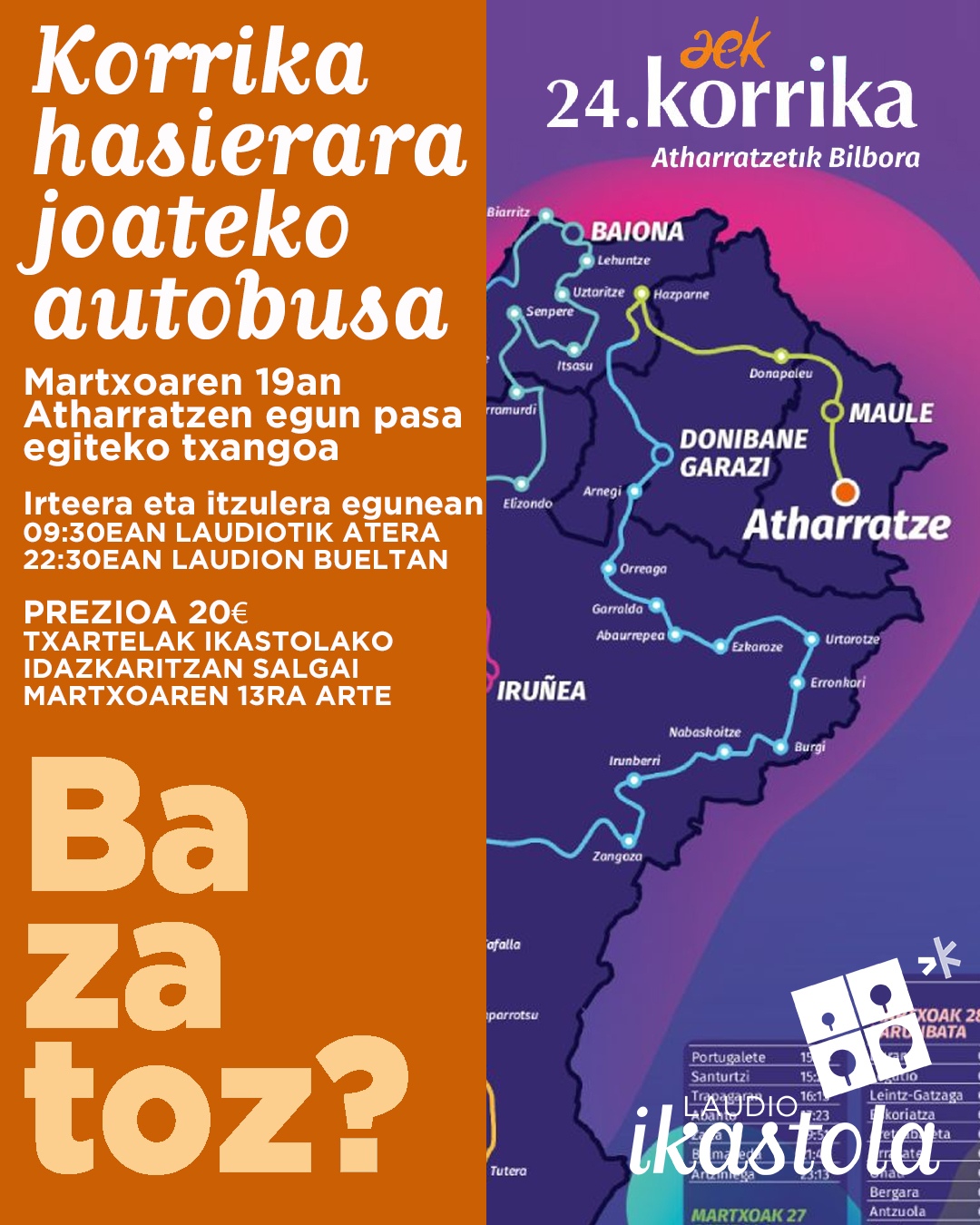 Laudio Ikastolak martxoaren 19an Atharratzetik abiatuko den 24. Korrikaren hasierara joateko autobusa antolatuko du.