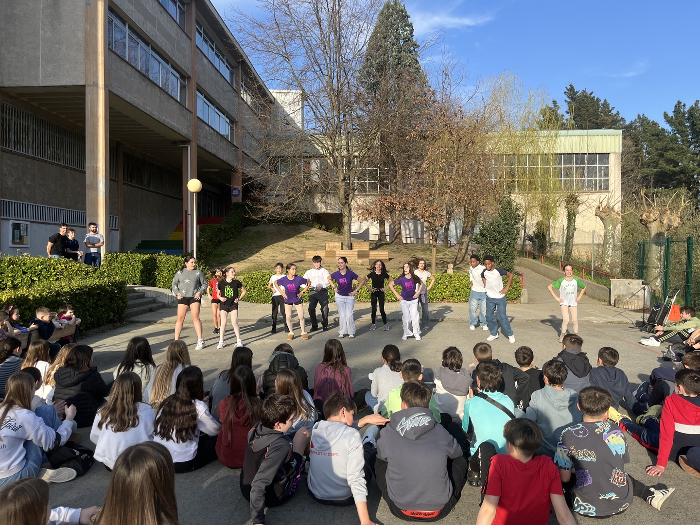 Atzo, martxoak 2, DBH1eko ikasleek Olotetik etorritako Petit Plançó eskolako ikasleei harrera beroa egin zieten.