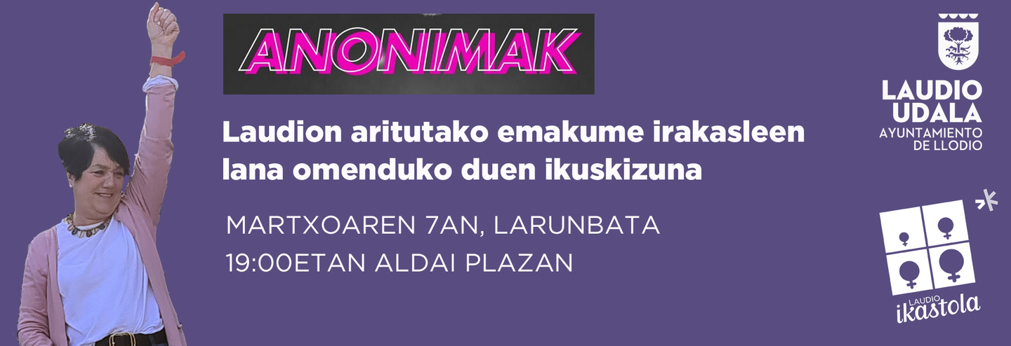 Laudio Udalak martxoaren 8rako prestatu duen programa barruan, Laudion irakasle aritutako emakumeei omenaldia eskainiko die martxoaren 7an, 19:00etan Aldai Plazan, berton antzeztuko den Anonimak ikuskizunarekin batera.