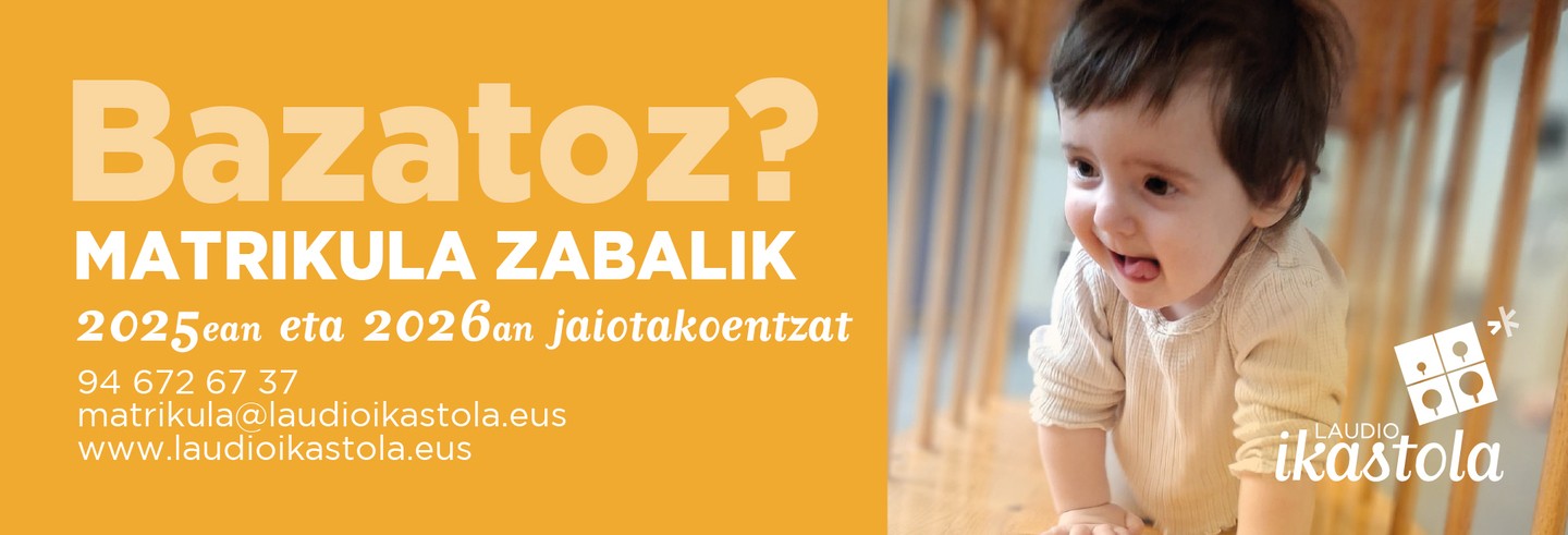 2026/27 ikasturtean Ikastolan 0 eta urte 1eko gelatan hasiko diren ikasle berrientzako matrikula epea zabalik dugu, 2025 eta 2026 urteetan jaiotakoentzat.