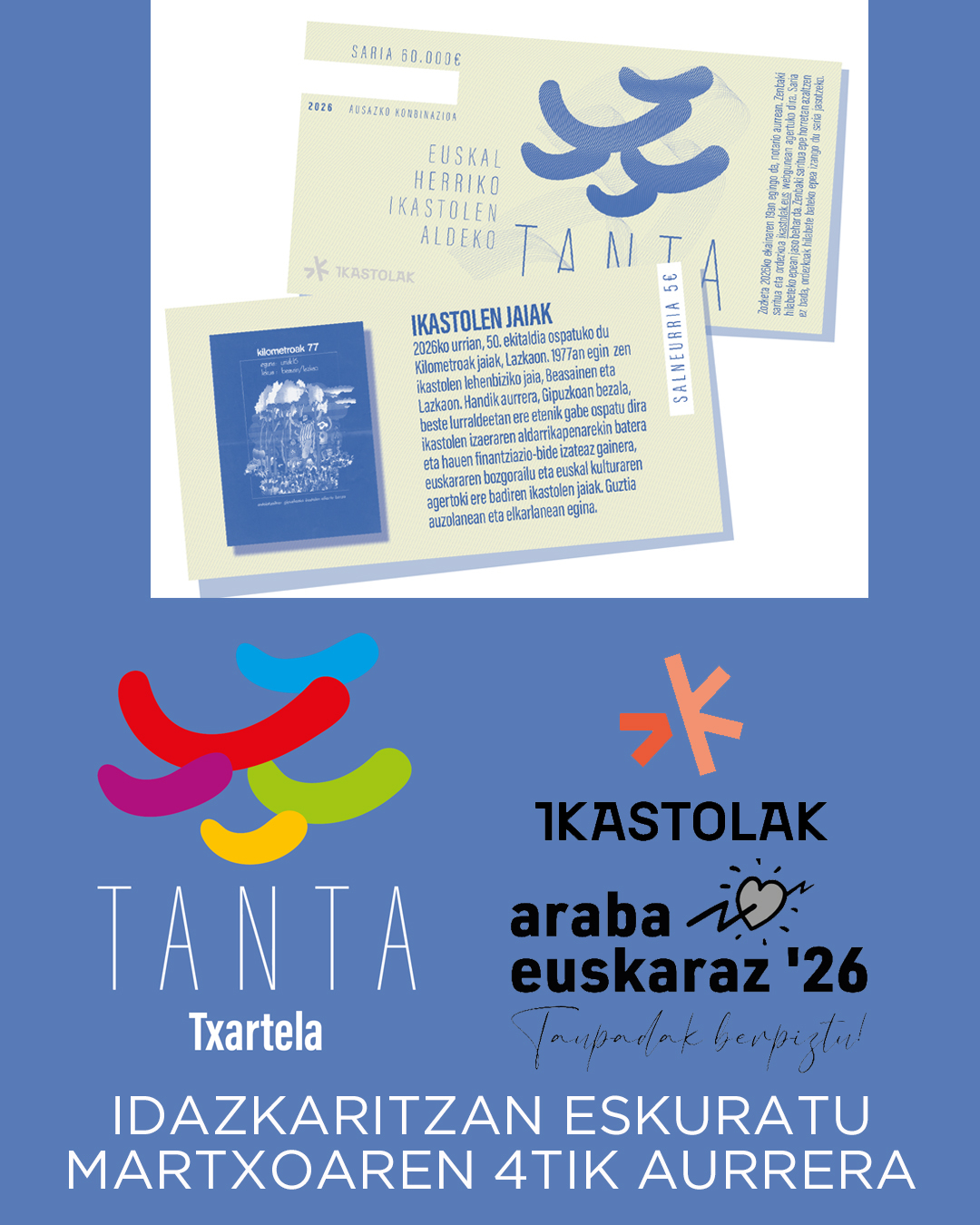 Martxoko erreziboan familia bakoitzari egokitu zaizkien tanta boletoen kobrantza burutu genuen eta martxoaren 4tik eskuragarri daude Ikastolako idazkaritzan.