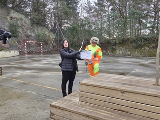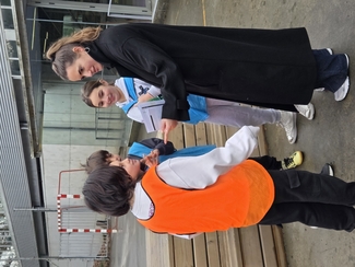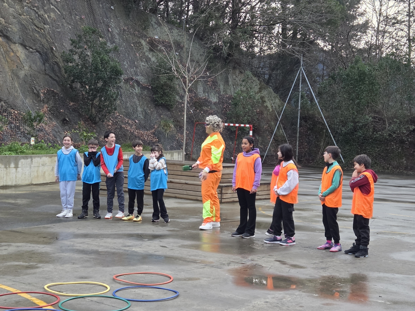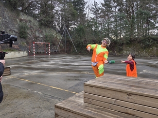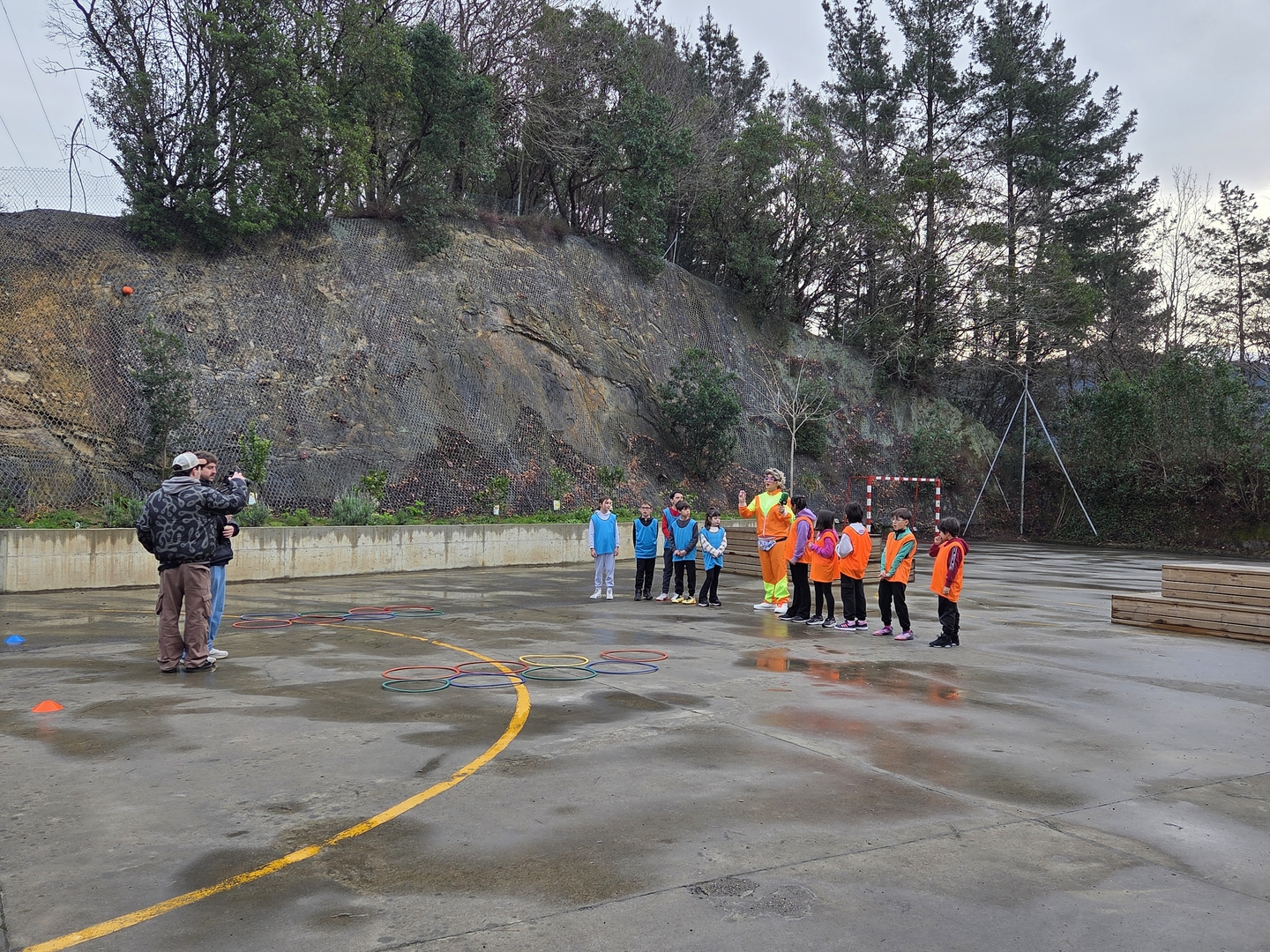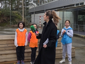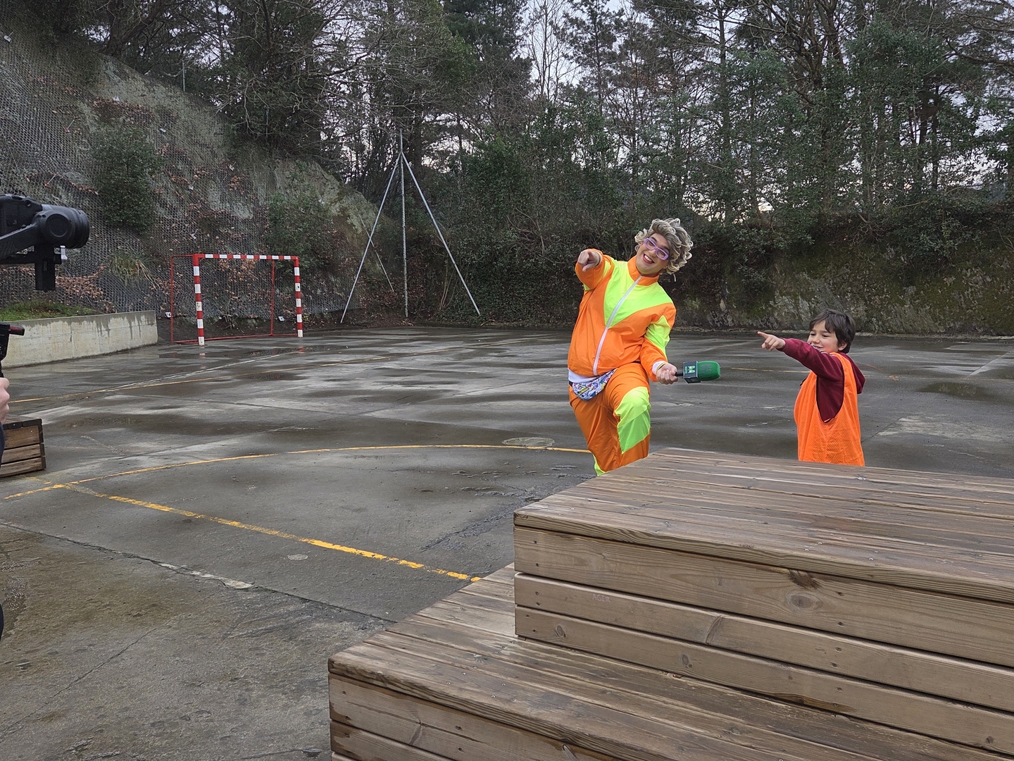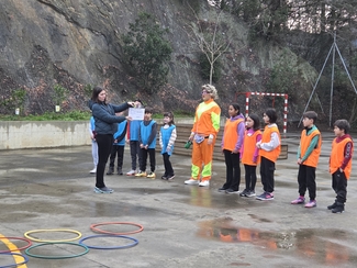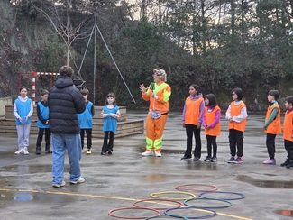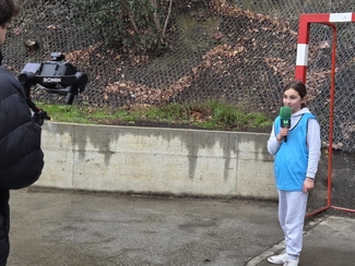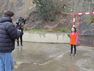Neska mutilek ilusio handiz parte hartu dute  jardunaldian zehar, Izaskunen erronkak grabatzen.